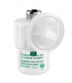 Visibilité du niveau d'encrassement : De part sa position frontale verticale, le filtre antibactérien plastique est très visible même de loin. Il est donc facile de constater son état d'encrassement, alertant le personnel de la nécessité de son changement, pour un patient long séjour.